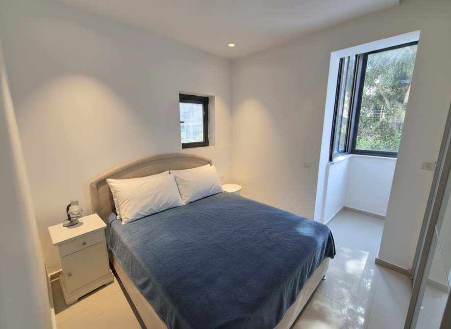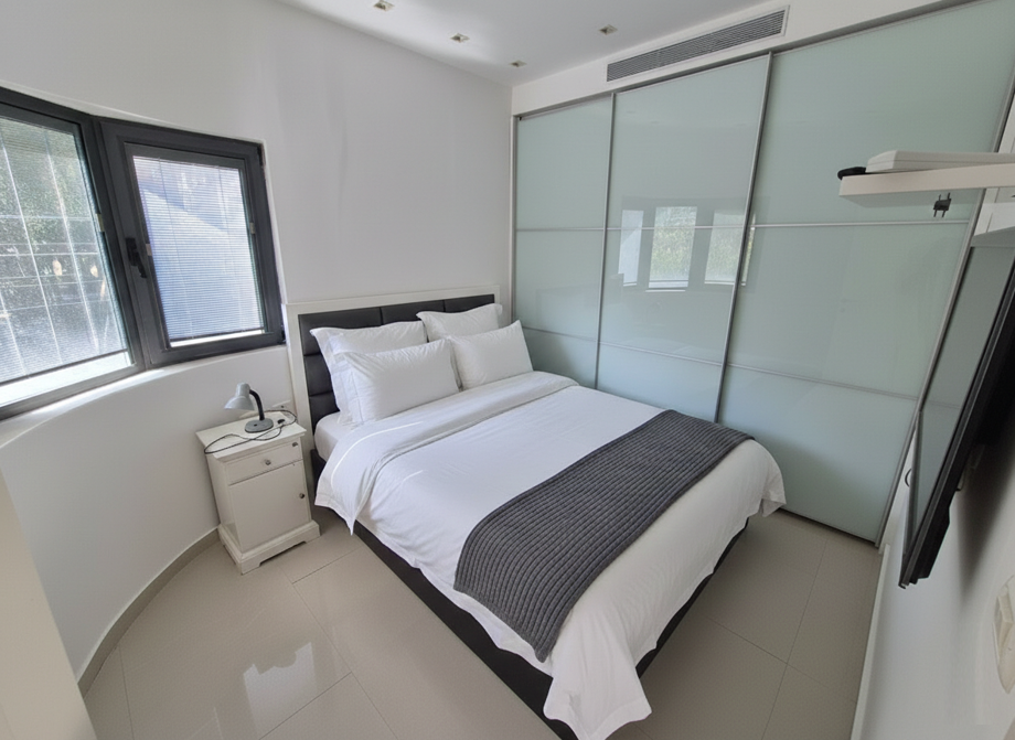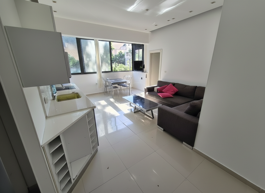 In a renovated building with intercom and elevator on a quiet street, cozy furnished apartment with living room, kitchen, 2 bedrooms, bathroom, and toilet.